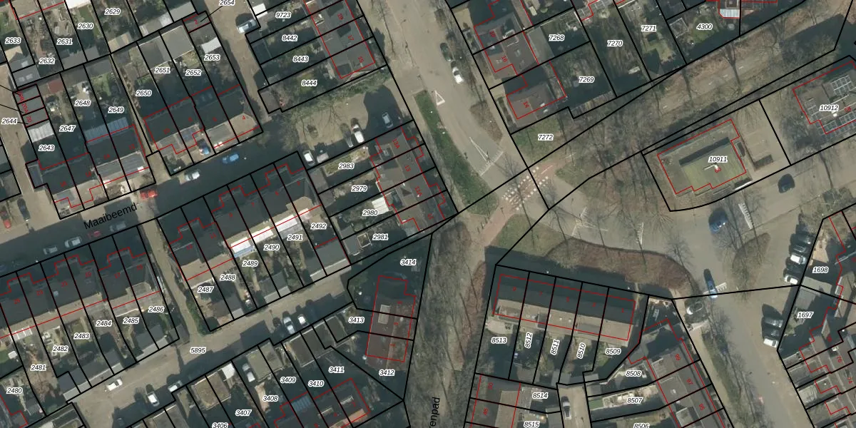 Gebruik de zoekbalk of klik op een perceel voor informatie over de adressen binnen dit perceel.