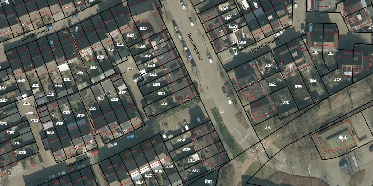 Brandebeemd 15 is gelegen op kadastraal perceel BDA00H8444. Deze kadastrale aanduiding is uniek en wordt gebruikt door het Kadaster om eigendomsrechten en andere zakelijke rechten vast te leggen. Het perceel maakt onderdeel uit van de kadastrale gemeente Breda.
