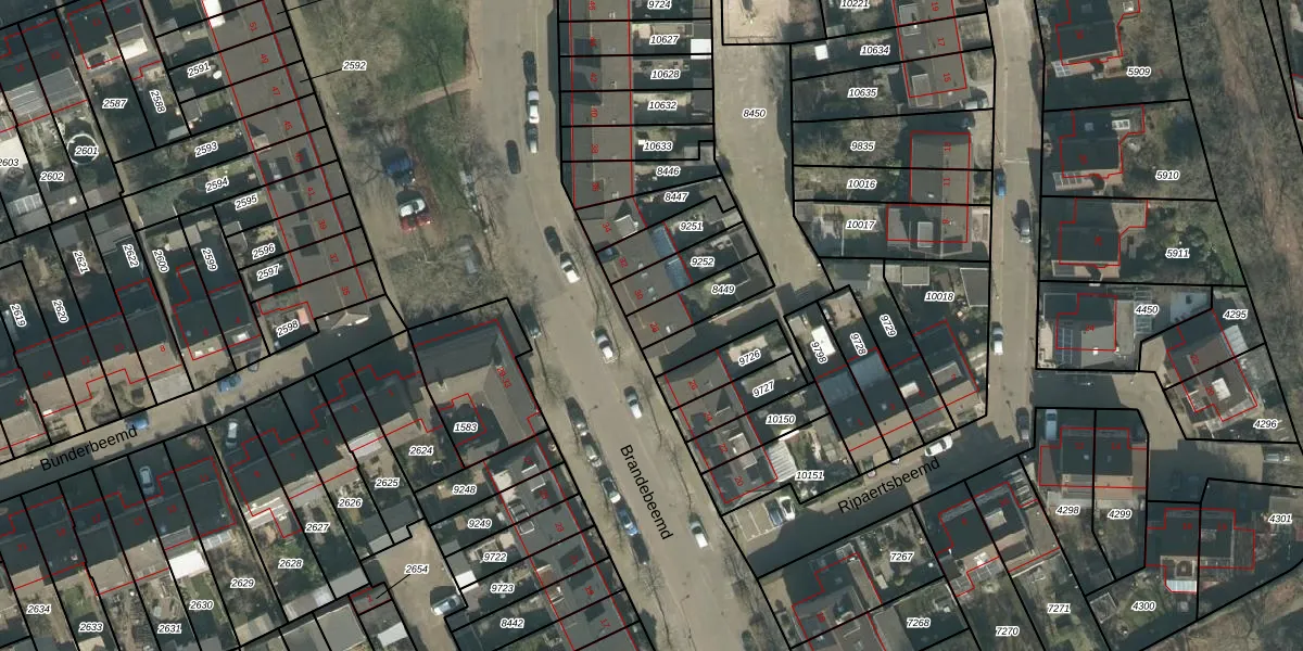 Brandebeemd 28 is gelegen op kadastraal perceel BDA00H8449. Deze kadastrale aanduiding is uniek en wordt gebruikt door het Kadaster om eigendomsrechten en andere zakelijke rechten vast te leggen. Het perceel maakt onderdeel uit van de kadastrale gemeente Breda.