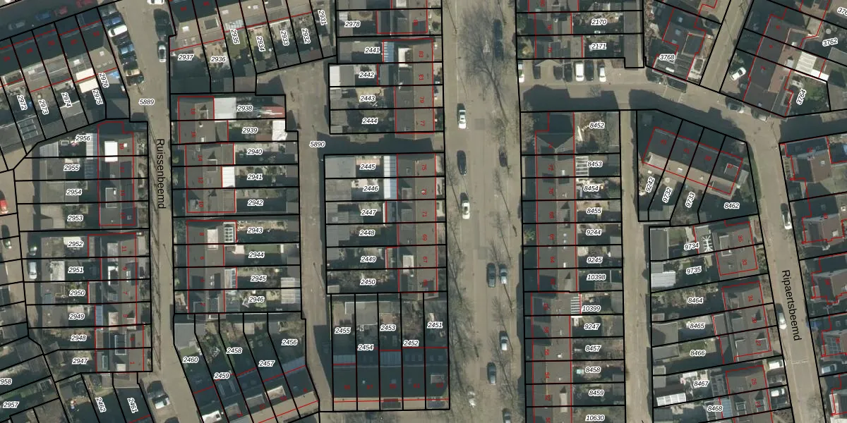 Gebruik de zoekbalk of klik op een perceel voor informatie over de adressen binnen dit perceel.