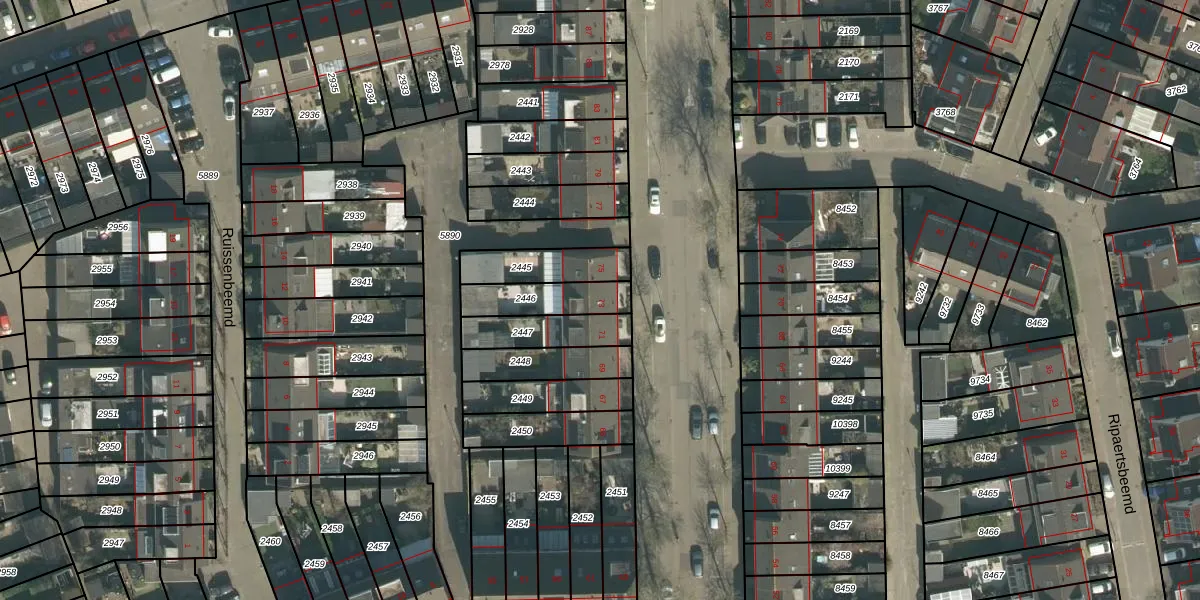 Gebruik de zoekbalk of klik op een perceel voor informatie over de adressen binnen dit perceel.