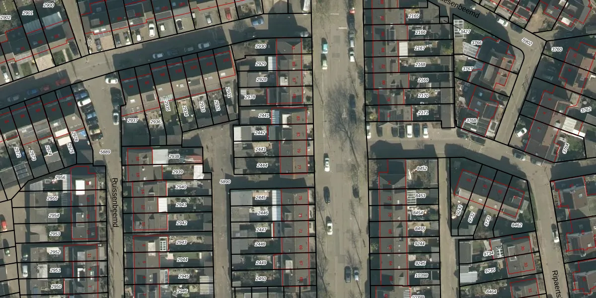 Gebruik de zoekbalk of klik op een perceel voor informatie over de adressen binnen dit perceel.