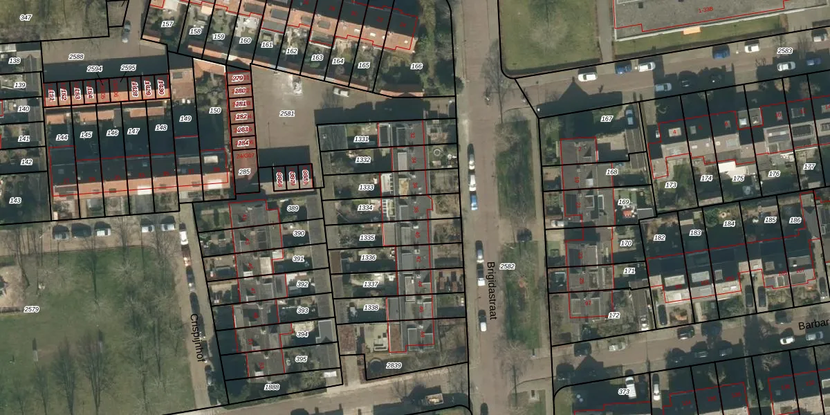 Het perceel waarop Brigidastraat 38 staat heeft een oppervlakte van 200 m². Dit is een middelgroot perceel. De perceeloppervlakte wordt geregistreerd door het Kadaster. Gedetailleerde informatie over de maten van dit perceel kunt u vinden in het rapport Kadastrale kaart met maatvoering van Brigidastraat 38.