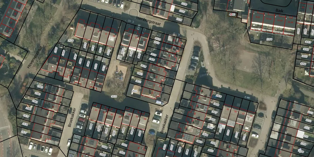 Broekakker 19 is gelegen op kadastraal perceel PCH00N2613. Deze kadastrale aanduiding is uniek en wordt gebruikt door het Kadaster om eigendomsrechten en andere zakelijke rechten vast te leggen. Het perceel maakt onderdeel uit van de kadastrale gemeente Princenhage.