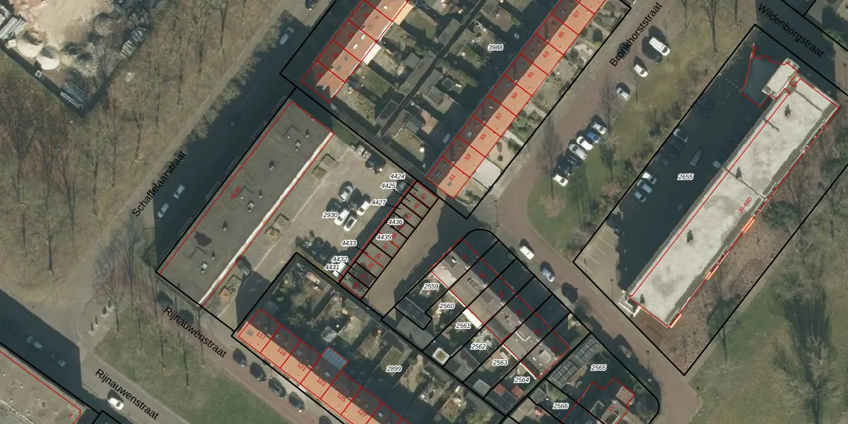 Het perceel waarop Bronkhorststraat 45 staat heeft een oppervlakte van 19 m². Dit is een klein perceel. De perceeloppervlakte wordt geregistreerd door het Kadaster. Gedetailleerde informatie over de maten van dit perceel kunt u vinden in het rapport Kadastrale kaart met maatvoering van Bronkhorststraat 45.