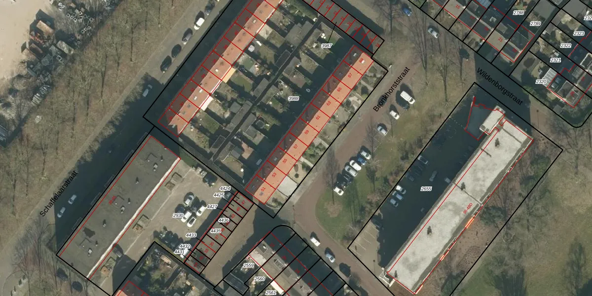 Het perceel waarop Bronkhorststraat 57 staat heeft een oppervlakte van 3596 m². Dit is een zeer groot perceel. De perceeloppervlakte wordt geregistreerd door het Kadaster. Gedetailleerde informatie over de maten van dit perceel kunt u vinden in het rapport Kadastrale kaart met maatvoering van Bronkhorststraat 57.