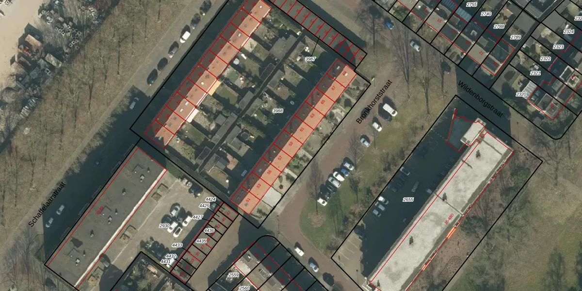 Het perceel waarop Bronkhorststraat 59 staat heeft een oppervlakte van 3596 m². Dit is een zeer groot perceel. De perceeloppervlakte wordt geregistreerd door het Kadaster. Gedetailleerde informatie over de maten van dit perceel kunt u vinden in het rapport Kadastrale kaart met maatvoering van Bronkhorststraat 59.