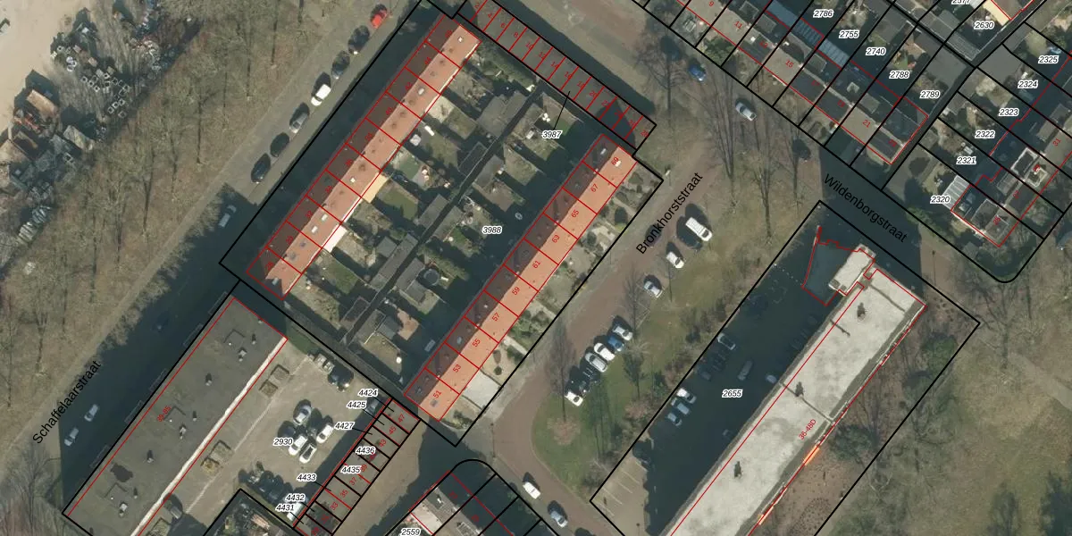 Het perceel waarop Bronkhorststraat 61 staat heeft een oppervlakte van 3596 m². Dit is een zeer groot perceel. De perceeloppervlakte wordt geregistreerd door het Kadaster. Gedetailleerde informatie over de maten van dit perceel kunt u vinden in het rapport Kadastrale kaart met maatvoering van Bronkhorststraat 61.