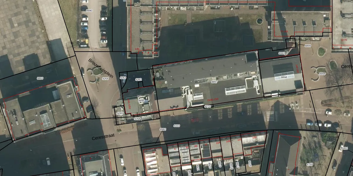 Het perceel waarop Brouwhuisplein 1-C4 staat heeft een oppervlakte van 1600 m². Dit is een zeer groot perceel. De perceeloppervlakte wordt geregistreerd door het Kadaster. Gedetailleerde informatie over de maten van dit perceel kunt u vinden in het rapport Kadastrale kaart met maatvoering van Brouwhuisplein 1-C4.