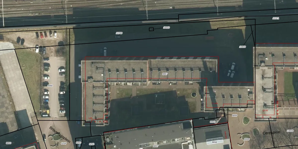 Het perceel waarop Brouwhuisplein 13 staat heeft een oppervlakte van 6995 m². Dit is een zeer groot perceel. De perceeloppervlakte wordt geregistreerd door het Kadaster. Gedetailleerde informatie over de maten van dit perceel kunt u vinden in het rapport Kadastrale kaart met maatvoering van Brouwhuisplein 13.