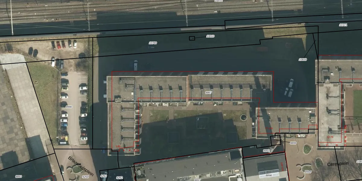 Het perceel waarop Brouwhuisplein 26 staat heeft een oppervlakte van 6995 m². Dit is een zeer groot perceel. De perceeloppervlakte wordt geregistreerd door het Kadaster. Gedetailleerde informatie over de maten van dit perceel kunt u vinden in het rapport Kadastrale kaart met maatvoering van Brouwhuisplein 26.