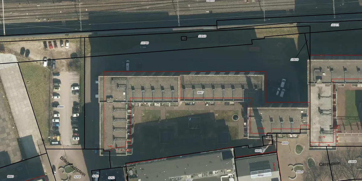 Het perceel waarop Brouwhuisplein 27 staat heeft een oppervlakte van 6995 m². Dit is een zeer groot perceel. De perceeloppervlakte wordt geregistreerd door het Kadaster. Gedetailleerde informatie over de maten van dit perceel kunt u vinden in het rapport Kadastrale kaart met maatvoering van Brouwhuisplein 27.