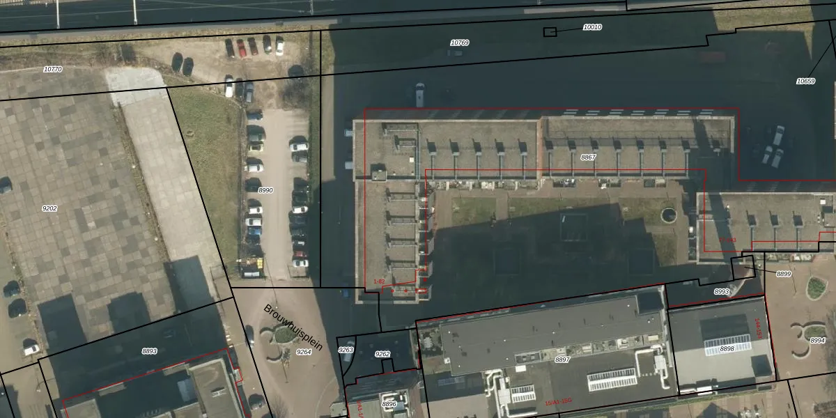 Het perceel waarop Brouwhuisplein 3 staat heeft een oppervlakte van 6995 m². Dit is een zeer groot perceel. De perceeloppervlakte wordt geregistreerd door het Kadaster. Gedetailleerde informatie over de maten van dit perceel kunt u vinden in het rapport Kadastrale kaart met maatvoering van Brouwhuisplein 3.