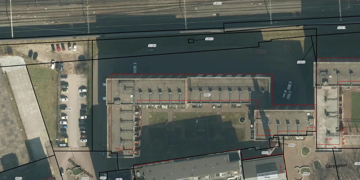 Het perceel waarop Brouwhuisplein 40 staat heeft een oppervlakte van 6995 m². Dit is een zeer groot perceel. De perceeloppervlakte wordt geregistreerd door het Kadaster. Gedetailleerde informatie over de maten van dit perceel kunt u vinden in het rapport Kadastrale kaart met maatvoering van Brouwhuisplein 40.