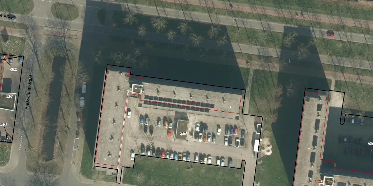 Het perceel waarop Brusselstraat 116 staat heeft een oppervlakte van 3835 m². Dit is een zeer groot perceel. De perceeloppervlakte wordt geregistreerd door het Kadaster. Gedetailleerde informatie over de maten van dit perceel kunt u vinden in het rapport Kadastrale kaart met maatvoering van Brusselstraat 116.