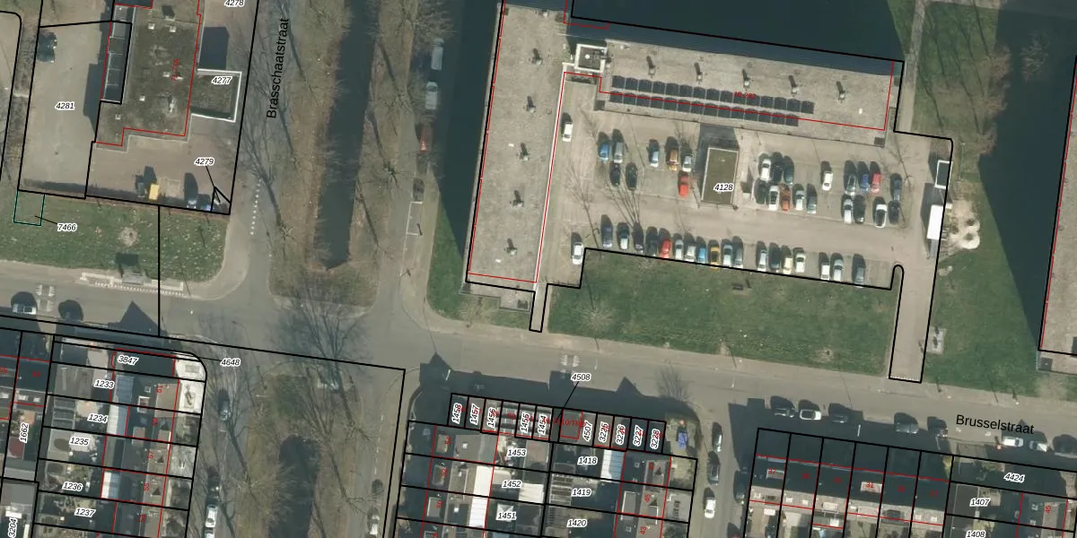 Het perceel waarop Brusselstraat 202 staat heeft een oppervlakte van 3835 m². Dit is een zeer groot perceel. De perceeloppervlakte wordt geregistreerd door het Kadaster. Gedetailleerde informatie over de maten van dit perceel kunt u vinden in het rapport Kadastrale kaart met maatvoering van Brusselstraat 202.