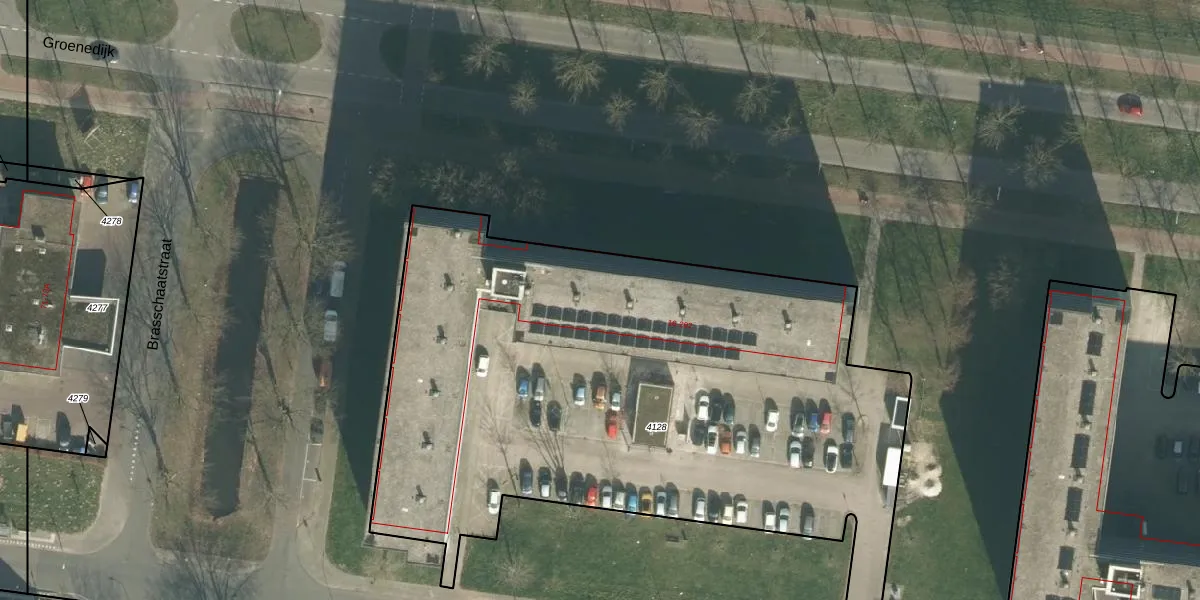 Het perceel waarop Brusselstraat 74 staat heeft een oppervlakte van 3835 m². Dit is een zeer groot perceel. De perceeloppervlakte wordt geregistreerd door het Kadaster. Gedetailleerde informatie over de maten van dit perceel kunt u vinden in het rapport Kadastrale kaart met maatvoering van Brusselstraat 74.