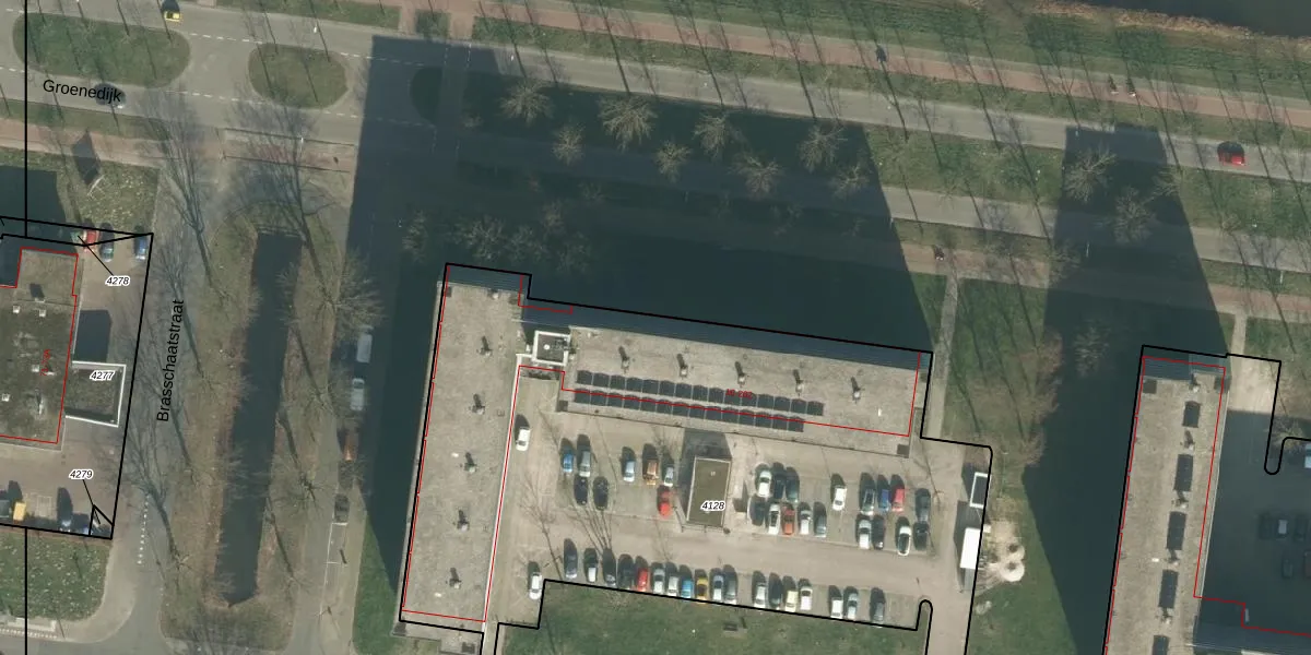 Het perceel waarop Brusselstraat 80 staat heeft een oppervlakte van 3835 m². Dit is een zeer groot perceel. De perceeloppervlakte wordt geregistreerd door het Kadaster. Gedetailleerde informatie over de maten van dit perceel kunt u vinden in het rapport Kadastrale kaart met maatvoering van Brusselstraat 80.