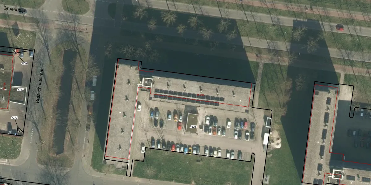 Het perceel waarop Brusselstraat 92 staat heeft een oppervlakte van 3835 m². Dit is een zeer groot perceel. De perceeloppervlakte wordt geregistreerd door het Kadaster. Gedetailleerde informatie over de maten van dit perceel kunt u vinden in het rapport Kadastrale kaart met maatvoering van Brusselstraat 92.