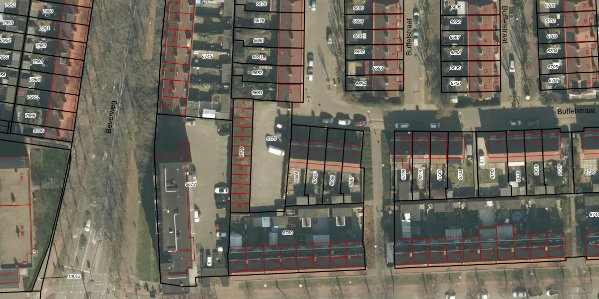 Buffelstraat 40 is gelegen op kadastraal perceel GNK02A6684. Deze kadastrale aanduiding is uniek en wordt gebruikt door het Kadaster om eigendomsrechten en andere zakelijke rechten vast te leggen. Het perceel maakt onderdeel uit van de kadastrale gemeente Ginneken.