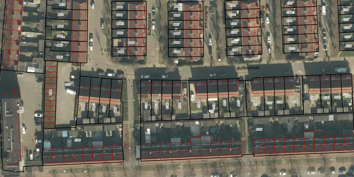Het perceel waarop Buffelstraat 54 staat heeft een oppervlakte van 221 m². Dit is een middelgroot perceel. De perceeloppervlakte wordt geregistreerd door het Kadaster. Gedetailleerde informatie over de maten van dit perceel kunt u vinden in het rapport Kadastrale kaart met maatvoering van Buffelstraat 54.