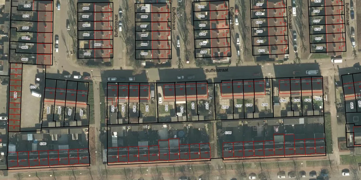Het perceel waarop Buffelstraat 58 staat heeft een oppervlakte van 126 m². Dit is een middelgroot perceel. De perceeloppervlakte wordt geregistreerd door het Kadaster. Gedetailleerde informatie over de maten van dit perceel kunt u vinden in het rapport Kadastrale kaart met maatvoering van Buffelstraat 58.