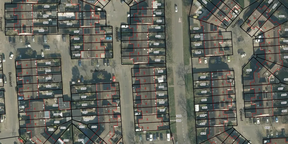 Buitenerf 102 is gelegen op kadastraal perceel BDA00H7662. Deze kadastrale aanduiding is uniek en wordt gebruikt door het Kadaster om eigendomsrechten en andere zakelijke rechten vast te leggen. Het perceel maakt onderdeel uit van de kadastrale gemeente Breda.