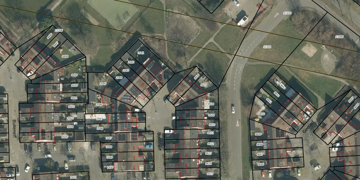 Buitenerf 122 is gelegen op kadastraal perceel BDA00H9506. Deze kadastrale aanduiding is uniek en wordt gebruikt door het Kadaster om eigendomsrechten en andere zakelijke rechten vast te leggen. Het perceel maakt onderdeel uit van de kadastrale gemeente Breda.