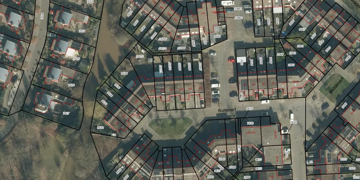 Het perceel waarop Buitenerf 149 staat heeft een oppervlakte van 165 m². Dit is een middelgroot perceel. De perceeloppervlakte wordt geregistreerd door het Kadaster. Gedetailleerde informatie over de maten van dit perceel kunt u vinden in het rapport Kadastrale kaart met maatvoering van Buitenerf 149.