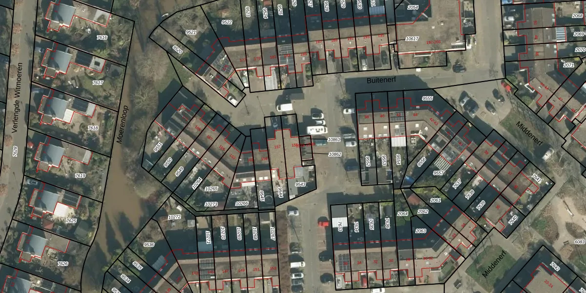 Het perceel waarop Buitenerf 155 staat heeft een oppervlakte van 192 m². Dit is een middelgroot perceel. De perceeloppervlakte wordt geregistreerd door het Kadaster. Gedetailleerde informatie over de maten van dit perceel kunt u vinden in het rapport Kadastrale kaart met maatvoering van Buitenerf 155.