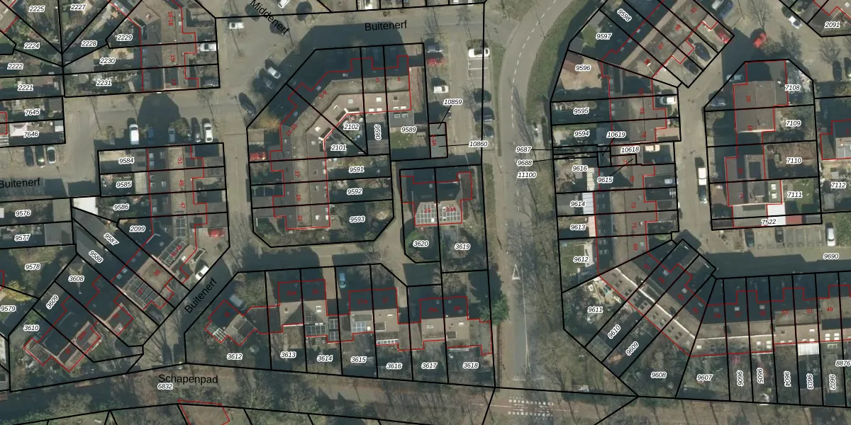 Buitenerf 23 is gelegen op kadastraal perceel BDA00H3620. Deze kadastrale aanduiding is uniek en wordt gebruikt door het Kadaster om eigendomsrechten en andere zakelijke rechten vast te leggen. Het perceel maakt onderdeel uit van de kadastrale gemeente Breda.