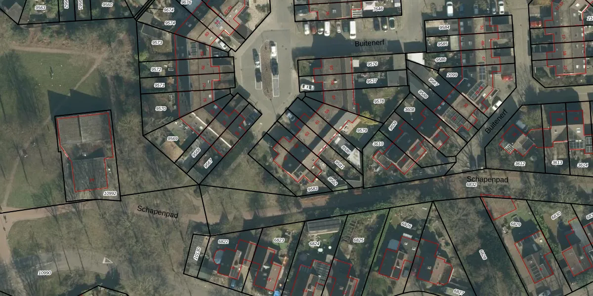 Het perceel waarop Buitenerf 65 staat heeft een oppervlakte van 175 m². Dit is een middelgroot perceel. De perceeloppervlakte wordt geregistreerd door het Kadaster. Gedetailleerde informatie over de maten van dit perceel kunt u vinden in het rapport Kadastrale kaart met maatvoering van Buitenerf 65.