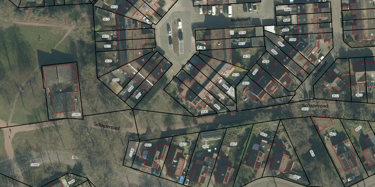 Buitenerf 67 is gelegen op kadastraal perceel BDA00H9583. Deze kadastrale aanduiding is uniek en wordt gebruikt door het Kadaster om eigendomsrechten en andere zakelijke rechten vast te leggen. Het perceel maakt onderdeel uit van de kadastrale gemeente Breda.
