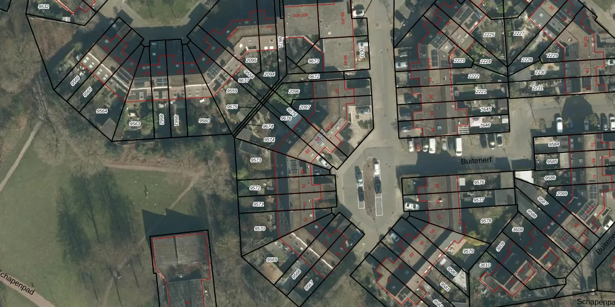 Buitenerf 83 is gelegen op kadastraal perceel BDA00H9574. Deze kadastrale aanduiding is uniek en wordt gebruikt door het Kadaster om eigendomsrechten en andere zakelijke rechten vast te leggen. Het perceel maakt onderdeel uit van de kadastrale gemeente Breda.