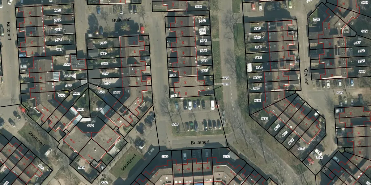Buitenerf 88 is gelegen op kadastraal perceel BDA00H7669. Deze kadastrale aanduiding is uniek en wordt gebruikt door het Kadaster om eigendomsrechten en andere zakelijke rechten vast te leggen. Het perceel maakt onderdeel uit van de kadastrale gemeente Breda.