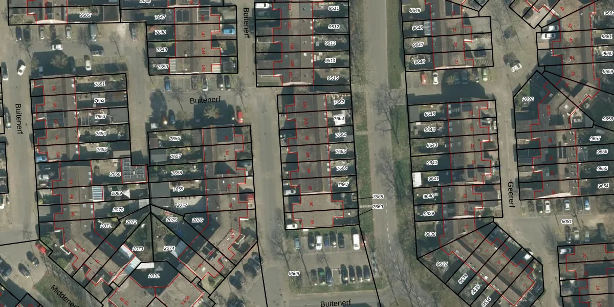 Buitenerf 96 is gelegen op kadastraal perceel BDA00H7665. Deze kadastrale aanduiding is uniek en wordt gebruikt door het Kadaster om eigendomsrechten en andere zakelijke rechten vast te leggen. Het perceel maakt onderdeel uit van de kadastrale gemeente Breda.