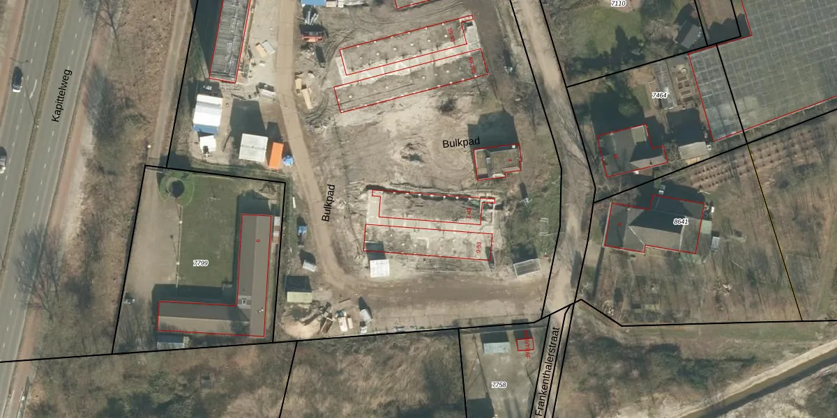 Het perceel waarop Bulkpad 23 staat heeft een oppervlakte van 1,2 ha. Dit is een zeer groot perceel. De perceeloppervlakte wordt geregistreerd door het Kadaster. Gedetailleerde informatie over de maten van dit perceel kunt u vinden in het rapport Kadastrale kaart met maatvoering van Bulkpad 23.