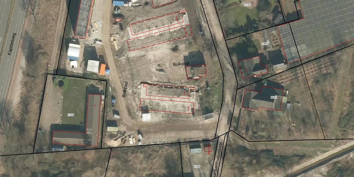 Het perceel waarop Bulkpad 39 staat heeft een oppervlakte van 1,2 ha. Dit is een zeer groot perceel. De perceeloppervlakte wordt geregistreerd door het Kadaster. Gedetailleerde informatie over de maten van dit perceel kunt u vinden in het rapport Kadastrale kaart met maatvoering van Bulkpad 39.