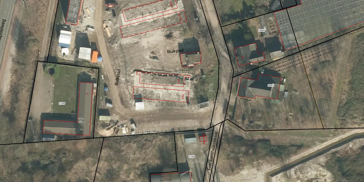 Het perceel waarop Bulkpad 45 staat heeft een oppervlakte van 1,2 ha. Dit is een zeer groot perceel. De perceeloppervlakte wordt geregistreerd door het Kadaster. Gedetailleerde informatie over de maten van dit perceel kunt u vinden in het rapport Kadastrale kaart met maatvoering van Bulkpad 45.