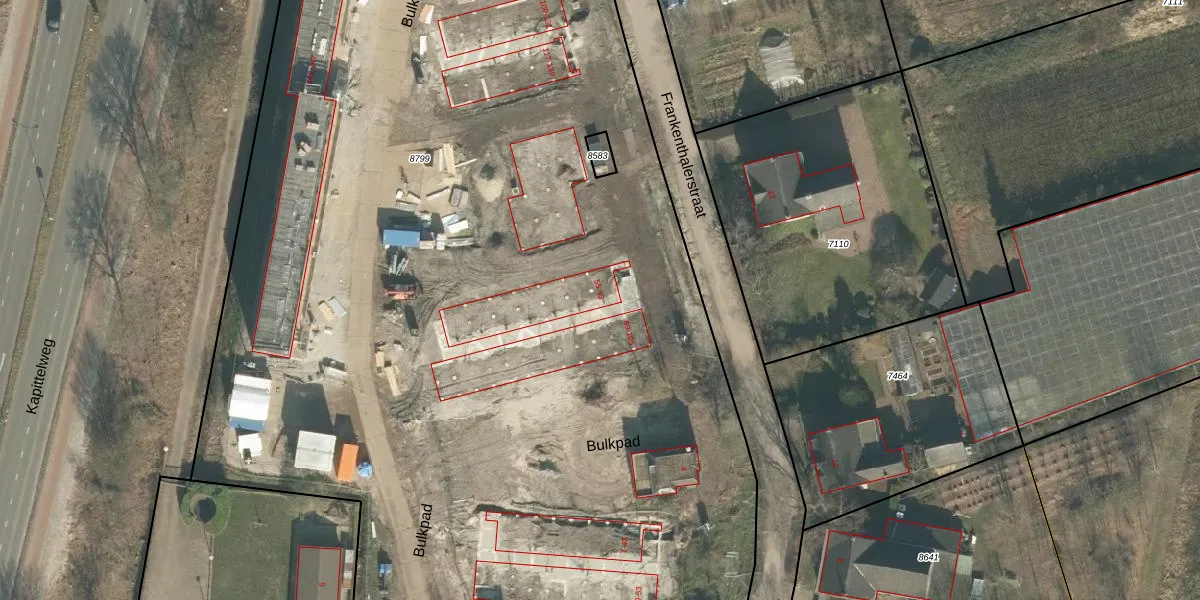 Het perceel waarop Bulkpad 55 staat heeft een oppervlakte van 1,2 ha. Dit is een zeer groot perceel. De perceeloppervlakte wordt geregistreerd door het Kadaster. Gedetailleerde informatie over de maten van dit perceel kunt u vinden in het rapport Kadastrale kaart met maatvoering van Bulkpad 55.