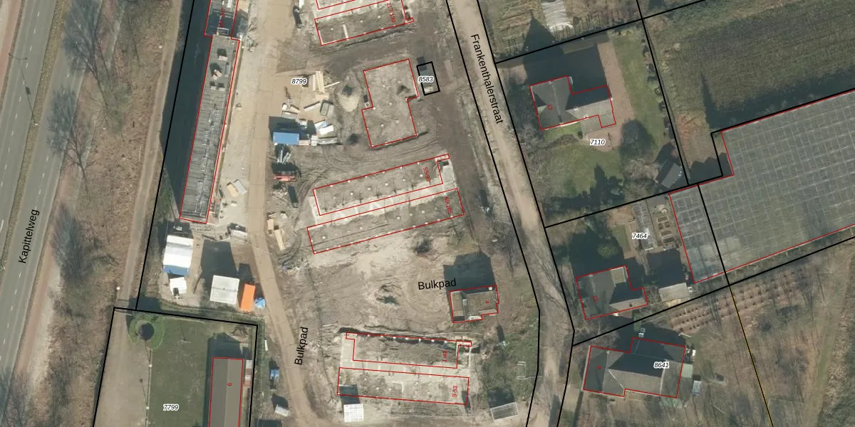 Het perceel waarop Bulkpad 97 staat heeft een oppervlakte van 1,2 ha. Dit is een zeer groot perceel. De perceeloppervlakte wordt geregistreerd door het Kadaster. Gedetailleerde informatie over de maten van dit perceel kunt u vinden in het rapport Kadastrale kaart met maatvoering van Bulkpad 97.