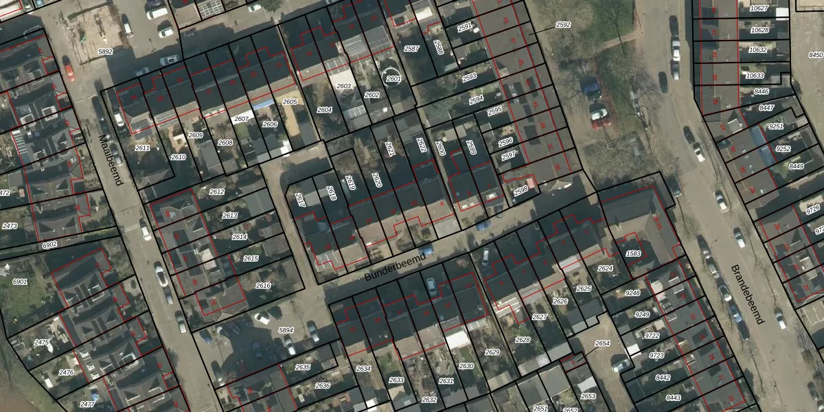 Gebruik de zoekbalk of klik op een perceel voor informatie over de adressen binnen dit perceel.