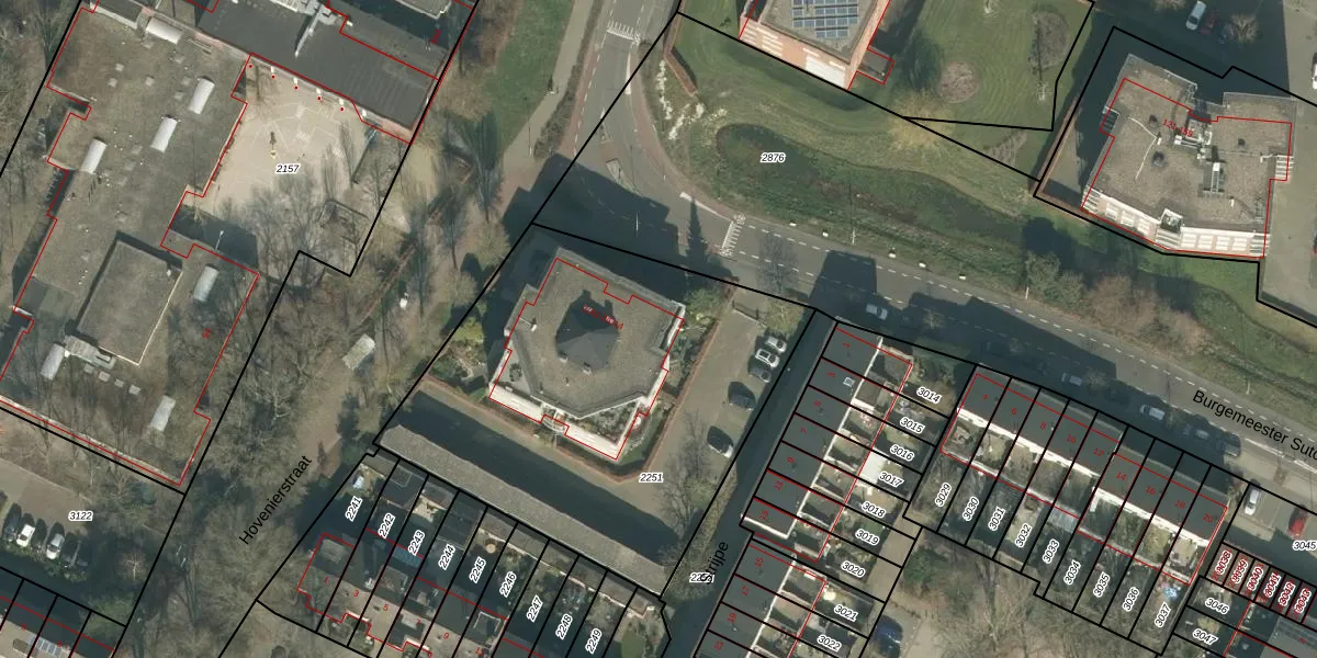 Het perceel waarop Burgemeester Sutoriusstraat 2-A3 staat heeft een oppervlakte van 2110 m². Dit is een zeer groot perceel. De perceeloppervlakte wordt geregistreerd door het Kadaster. Gedetailleerde informatie over de maten van dit perceel kunt u vinden in het rapport Kadastrale kaart met maatvoering van Burgemeester Sutoriusstraat 2-A3.