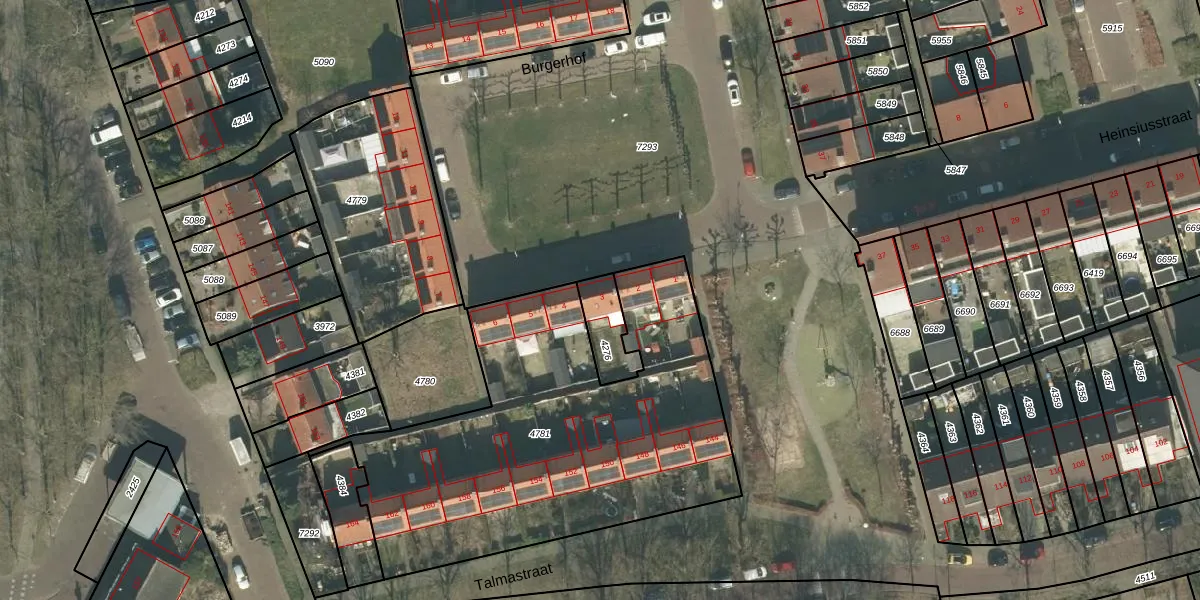 Gebruik de zoekbalk of klik op een perceel voor informatie over de adressen binnen dit perceel.