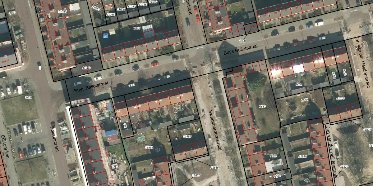 Het perceel waarop Buys Ballotstraat 24 staat heeft een oppervlakte van 2002 m². Dit is een zeer groot perceel. De perceeloppervlakte wordt geregistreerd door het Kadaster. Gedetailleerde informatie over de maten van dit perceel kunt u vinden in het rapport Kadastrale kaart met maatvoering van Buys Ballotstraat 24.