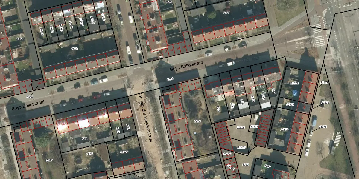 Het perceel waarop Buys Ballotstraat 52 staat heeft een oppervlakte van 1020 m². Dit is een zeer groot perceel. De perceeloppervlakte wordt geregistreerd door het Kadaster. Gedetailleerde informatie over de maten van dit perceel kunt u vinden in het rapport Kadastrale kaart met maatvoering van Buys Ballotstraat 52.