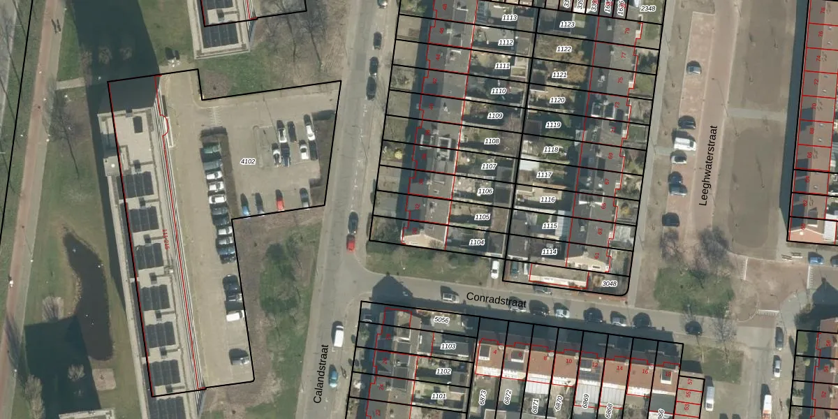 Gebruik de zoekbalk of klik op een perceel voor informatie over de adressen binnen dit perceel.