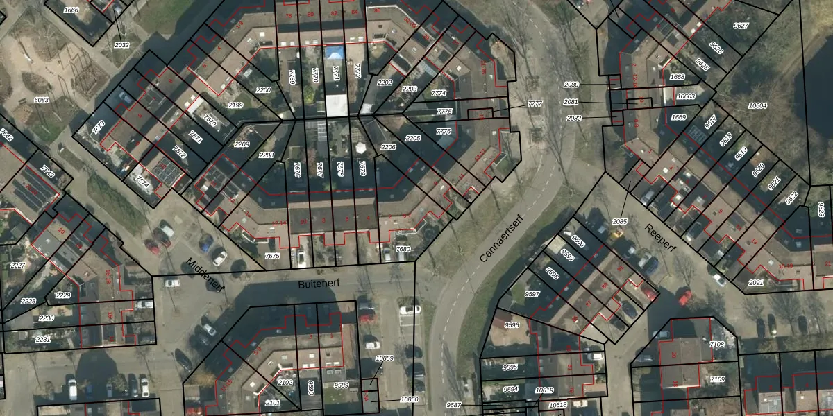 Cannaertserf 7 is gelegen op kadastraal perceel BDA00H7680. Deze kadastrale aanduiding is uniek en wordt gebruikt door het Kadaster om eigendomsrechten en andere zakelijke rechten vast te leggen. Het perceel maakt onderdeel uit van de kadastrale gemeente Breda.