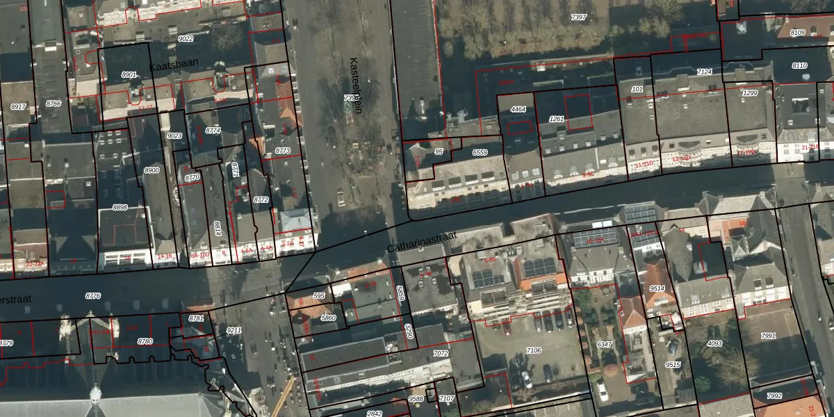 Het perceel waarop Catharinastraat 1 staat heeft een oppervlakte van 339 m². Dit is een groot perceel. De perceeloppervlakte wordt geregistreerd door het Kadaster. Gedetailleerde informatie over de maten van dit perceel kunt u vinden in het rapport Kadastrale kaart met maatvoering van Catharinastraat 1.