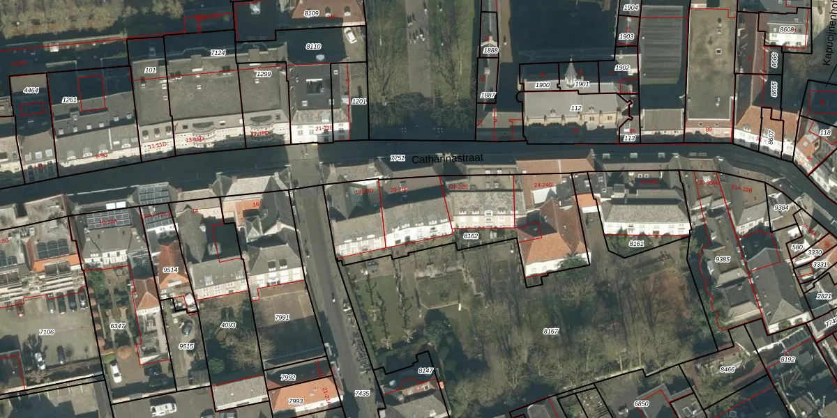 Catharinastraat 20-E is gelegen op kadastraal perceel BDA00B8162. Deze kadastrale aanduiding is uniek en wordt gebruikt door het Kadaster om eigendomsrechten en andere zakelijke rechten vast te leggen. Het perceel maakt onderdeel uit van de kadastrale gemeente Breda.
